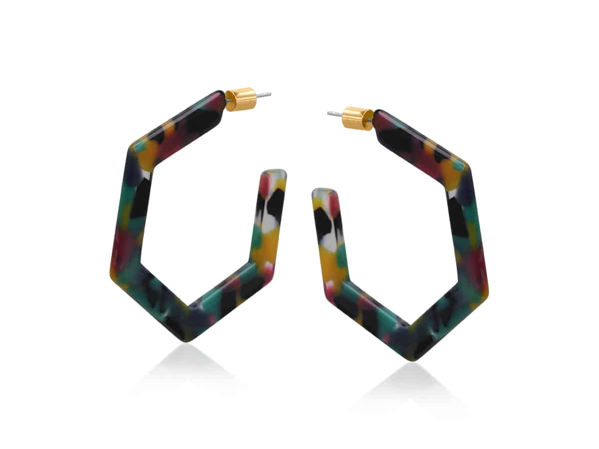 LIVIA RESIN HEXAGON STATEMENT HOOP EARRINGS