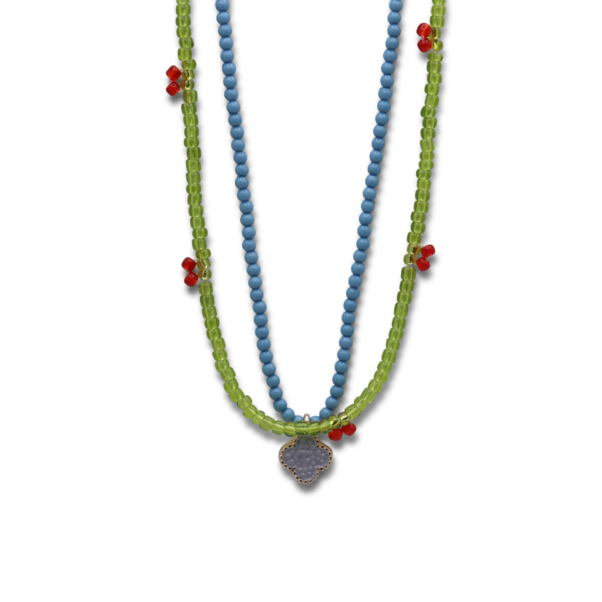 The Bahia Double Boho Necklace blends contemporary bohemian style with elegant geometric charm. Featuring two layered strands of colourful beads and polished gold-tone or silver-tone accents, this unique statement necklace is designed to elevate both casual and occasion wear. Available in a gold and green colourway or a refined silver and blue combination, it’s the perfect piece to add modern boho flair to your jewellery collection. At least 50% of the brass used in the jewellery we make is recycled from leftover/overhead materials.