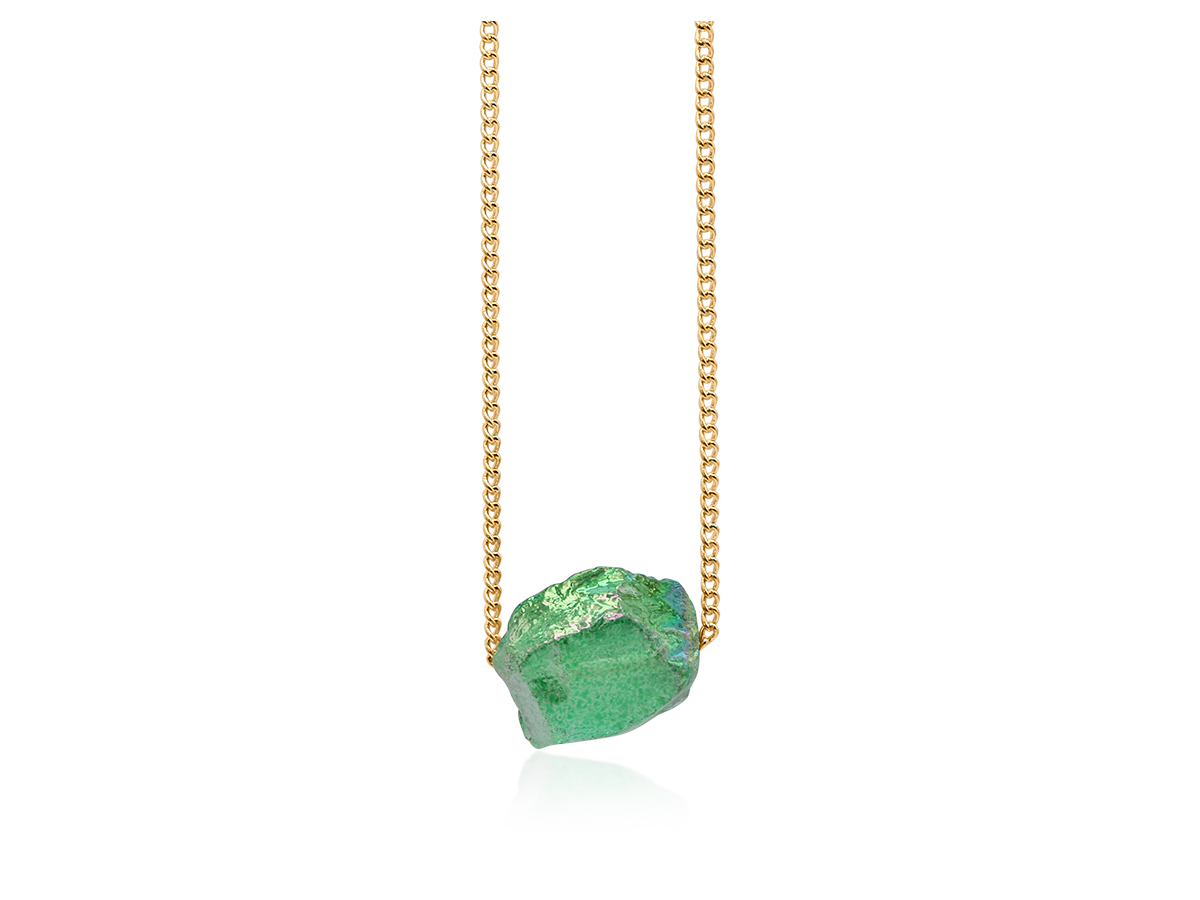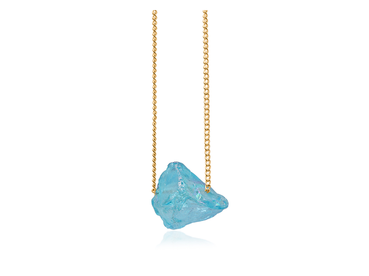This handcrafted necklace features a fine chain and a single faceted stone in your choice of blue, green, or pink, designed to catch the light with effortless ease. Minimal and elegant, it’s perfect worn solo for a subtle pop of colour or layered with your favourite chains for a modern, curated look. At least 50% of the brass used in the jewellery we make is recycled from leftover/overhead materials.