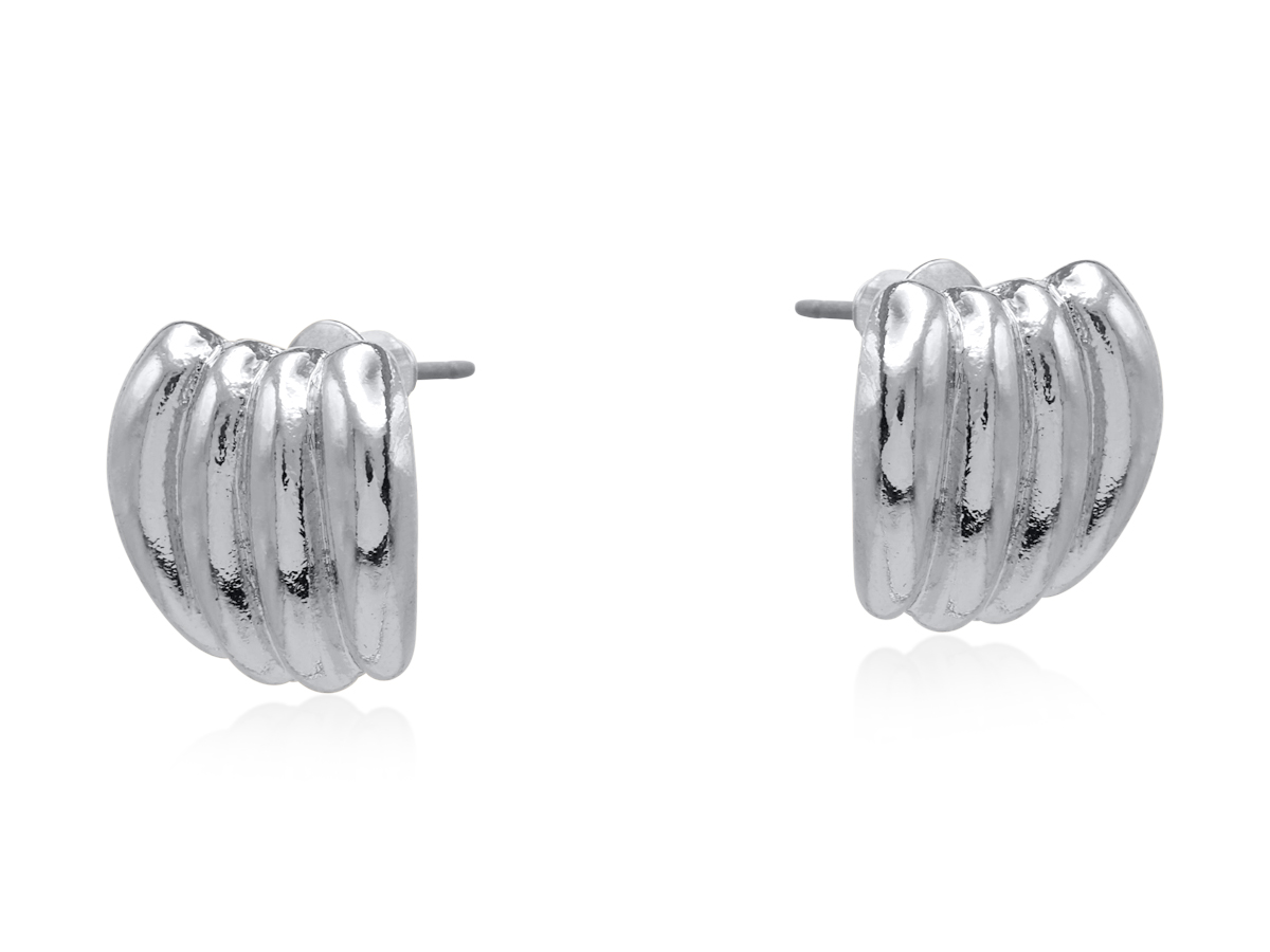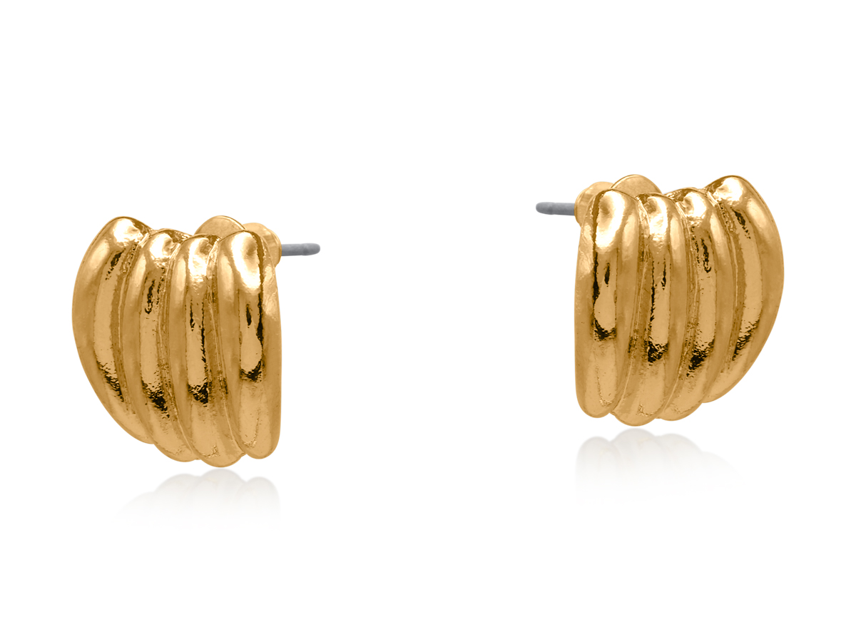 These handcrafted earrings feature a bold ribbed design with a high-shine finish, offering a sculptural update to a classic silhouette. Available in gold or silver, they’re the perfect everyday statement—easy to style, hard to miss. At least 50% of the brass used in the jewellery we make is recycled from leftover/overhead materials. All posts are hypoallergenic and made from surgical steel.