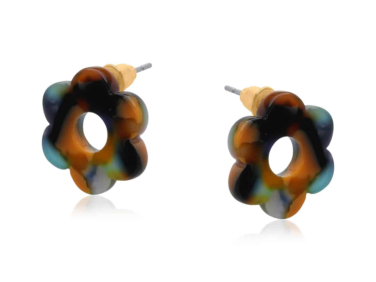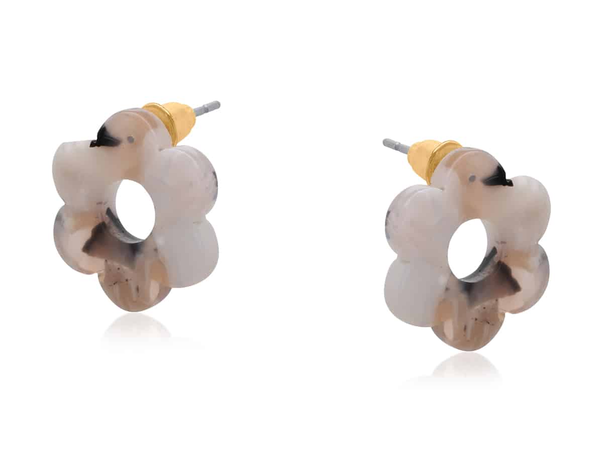 Delicate and playful, the Clara Petite Resin Flower Stud Earrings feature a compact floral silhouette in softly marbled tones. Their petite size makes them perfect for everyday styling or effortless layering.