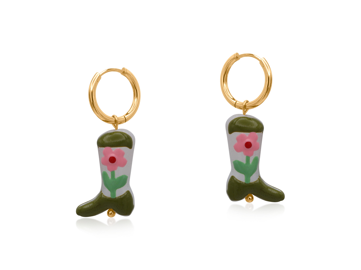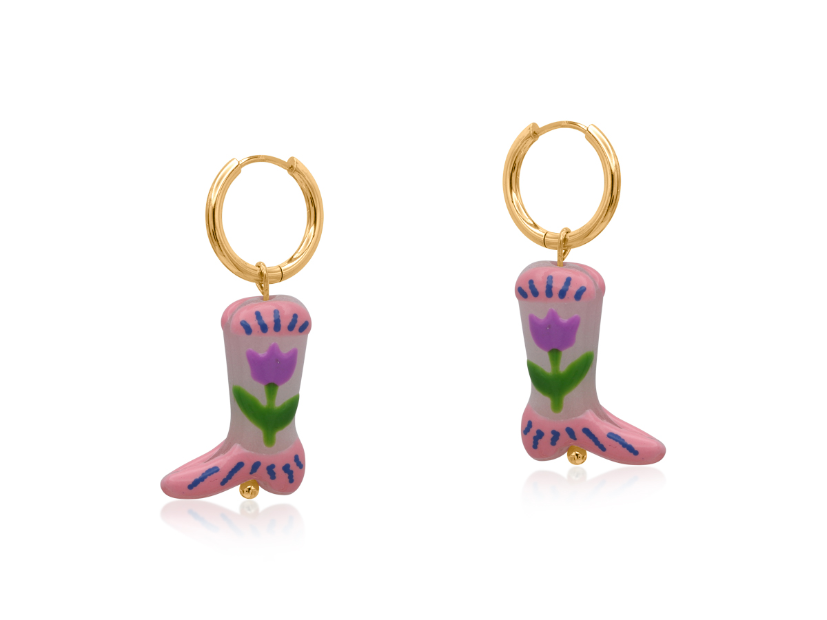 Playful and full of character, the Cowboy Boots Charm Earrings feature a detailed boot charm suspended from a refined hoop. Inspired by Western spirit and adventure, they bring a bold yet wearable accent to everyday styling.