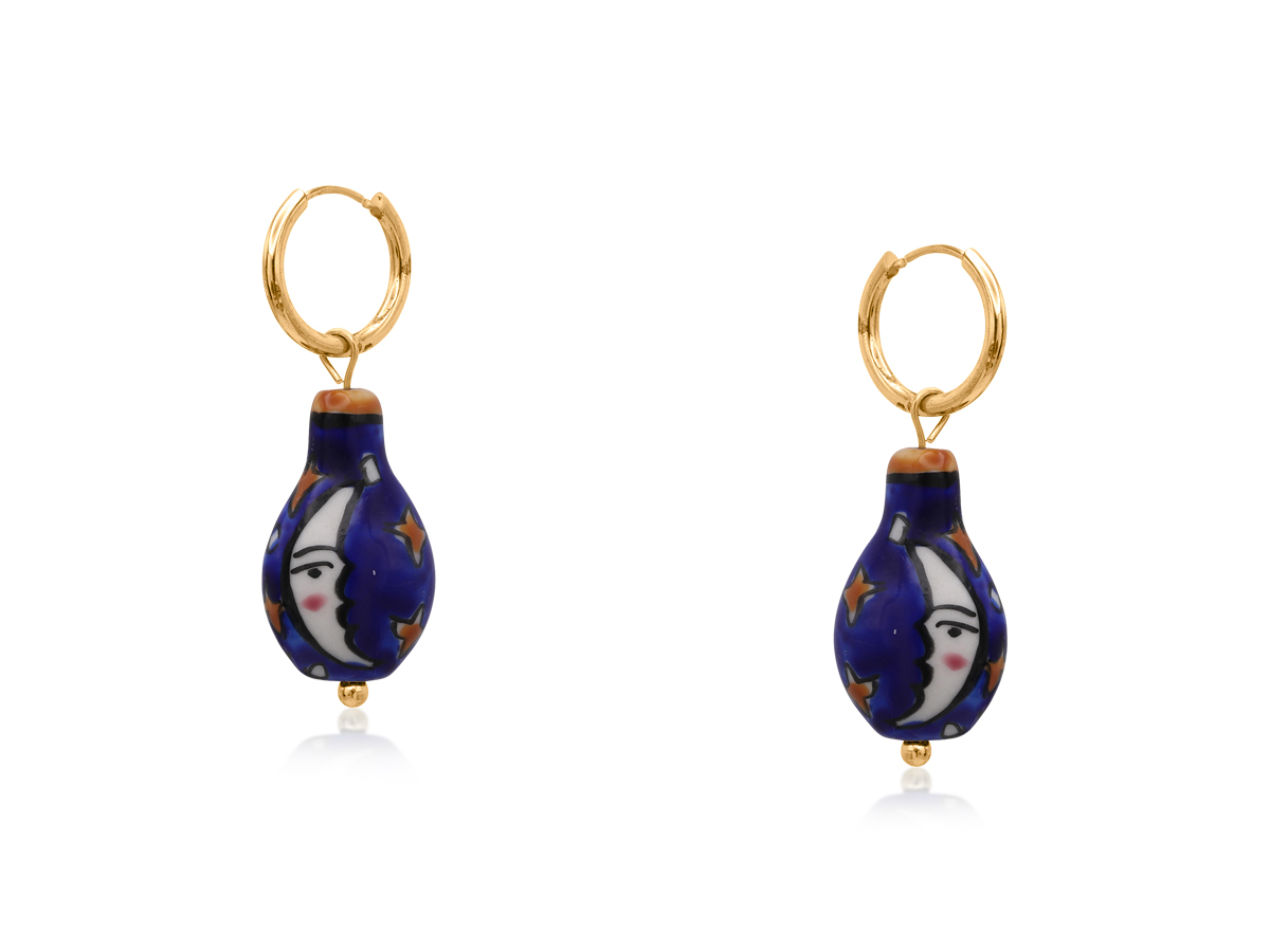 Playful and spirited, the Cowboy Tequila Charm Earrings showcase a small tequila-inspired charm paired with a compact hoop, and a blue-eye, heart, or moon motif. A fun nod to Western celebrations and bold style.