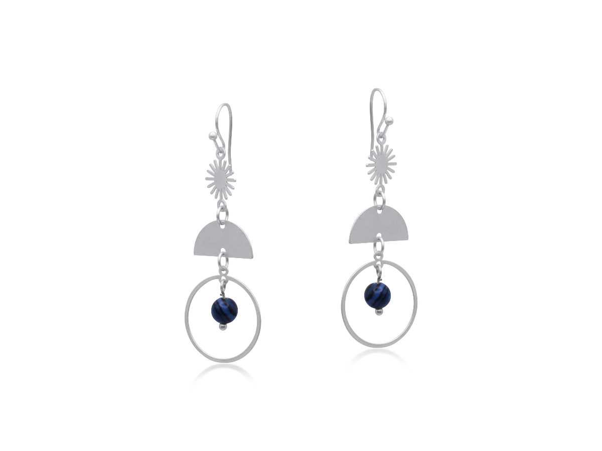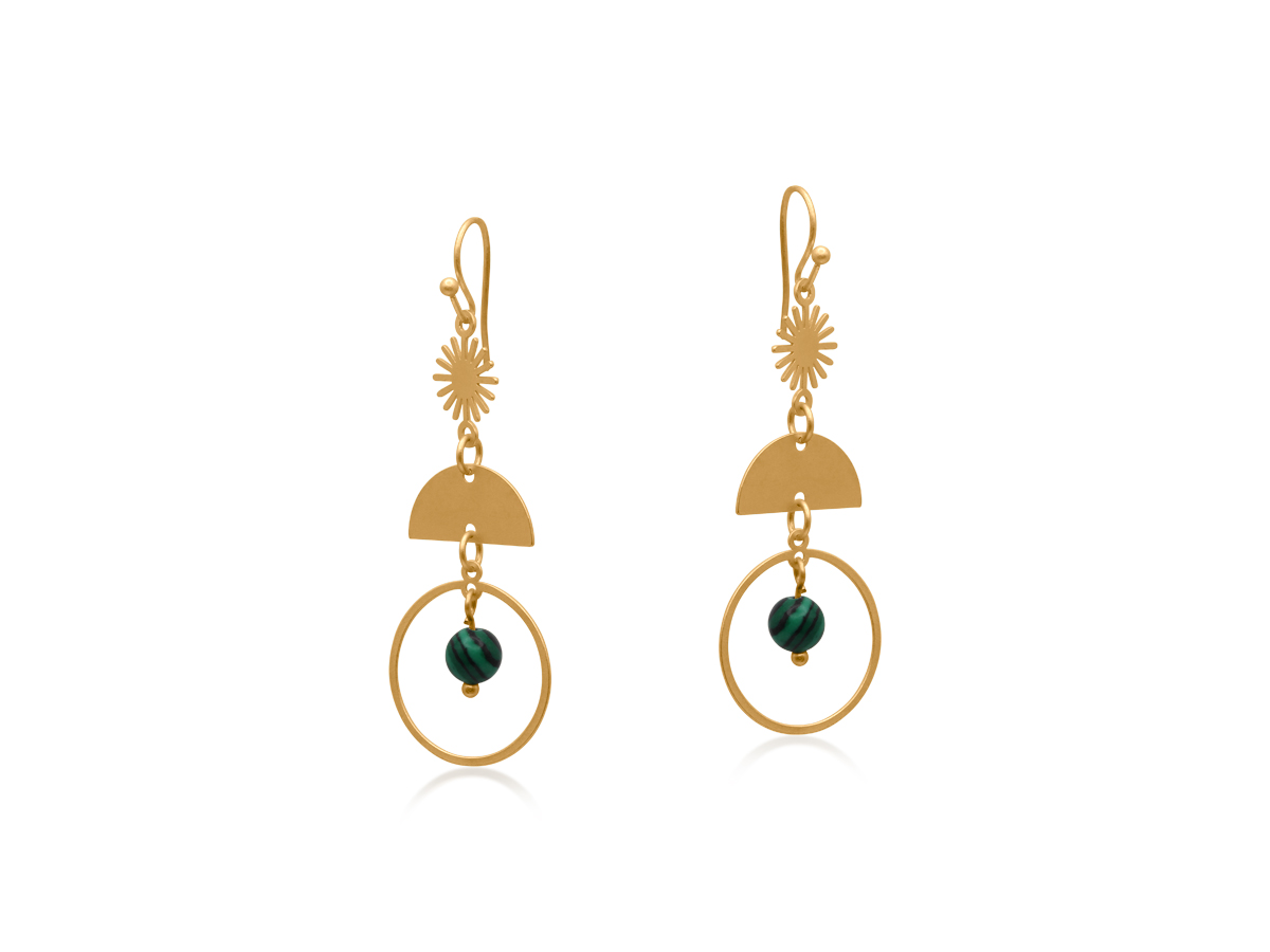 Elevate your jewellery collection with the Delphi Dream Ritual Statement Earrings—where modern elegance meets bold design. These lightweight yet impactful earrings feature sleek geometric elements and a polished central bead, creating a contemporary silhouette that catches the light with every movement. Perfect for evening wear or standout day looks, they come in two striking palettes: Gold-Green and Silver-Blue. Finished in sustainable brass with hypoallergenic surgical steel posts for comfortable, all-day wear.