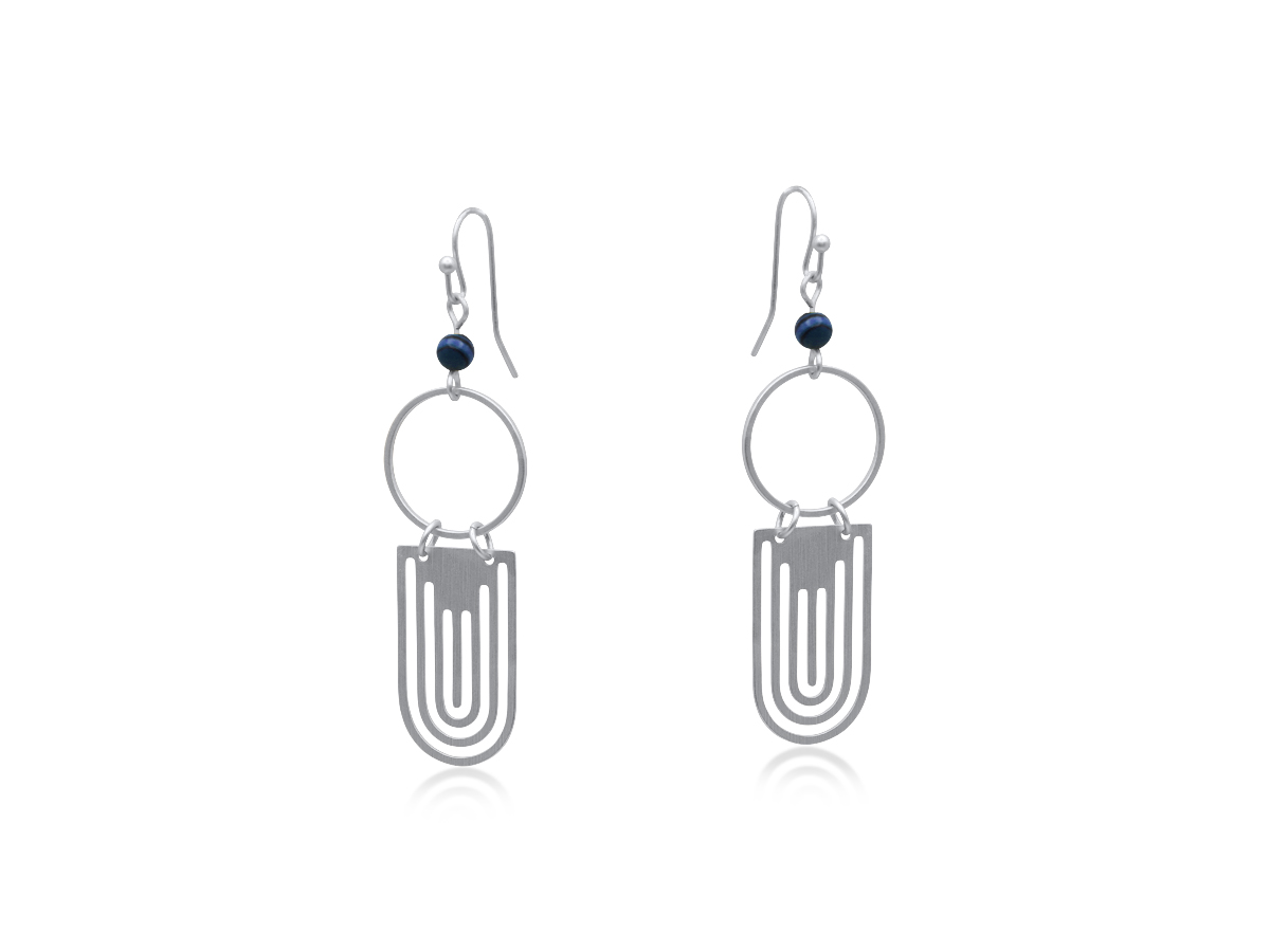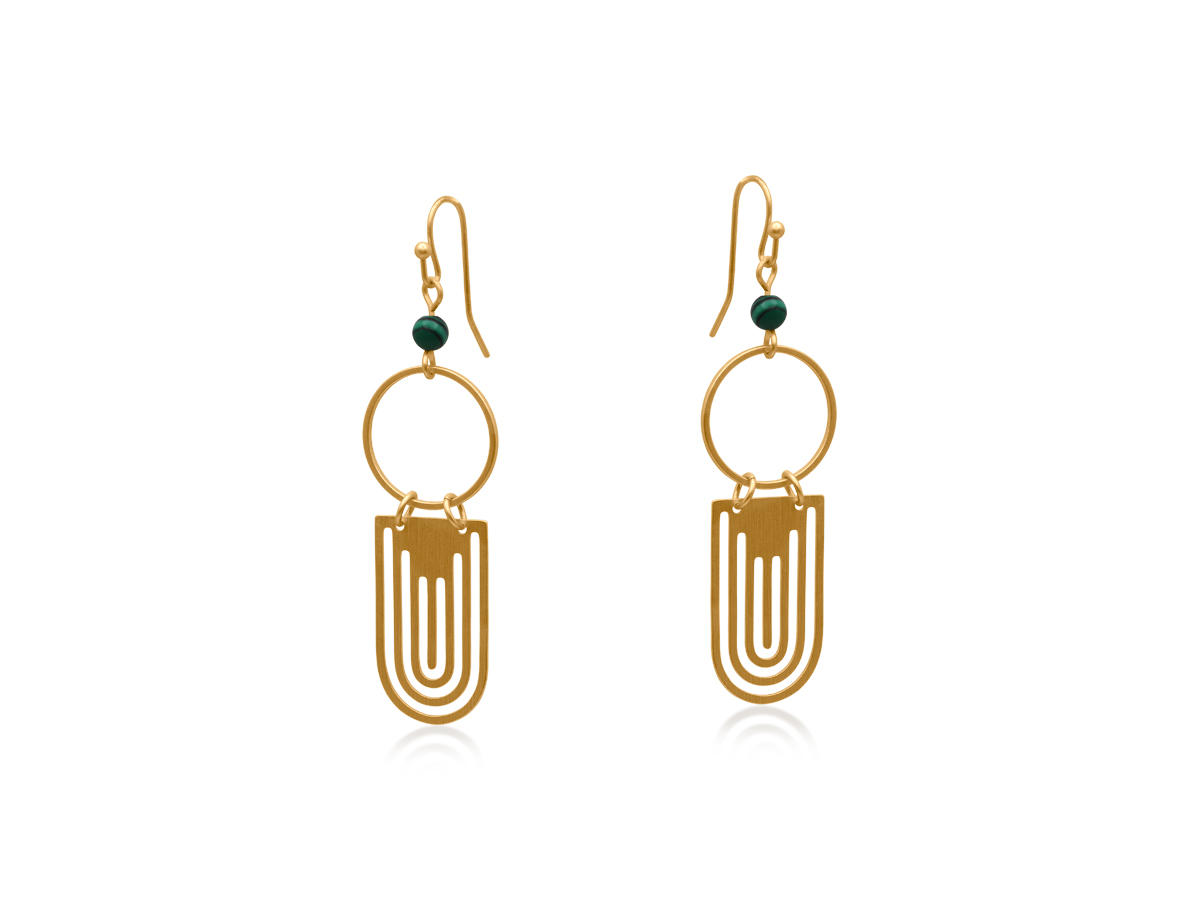 Striking and refined, the Delphi Shrine Statement Earrings blend contemporary lines with timeless symbolism. The layered arch motif and delicate bead accent create a bold yet elegant silhouette designed to elevate both everyday and occasion wear. Lightweight yet full of presence, these earrings are crafted from sustainable brass and finished with hypoallergenic surgical steel posts for all-day comfort. Available in Gold-Green or Silver-Blue to suit your signature style.