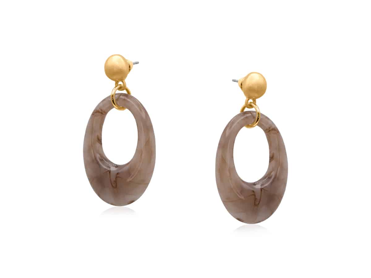 Crafted with sustainable resin and at least 50% recycled brass. Hypoallergenic surgical steel posts.