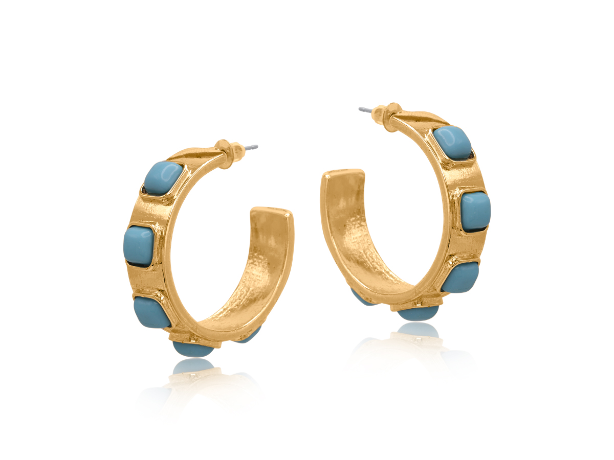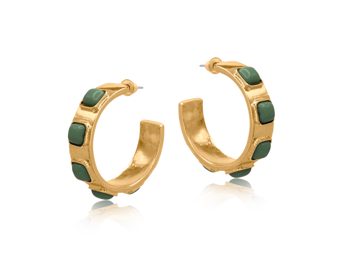 Made with glass beads and at least 50% recycled brass. Posts are hypoallergenic.