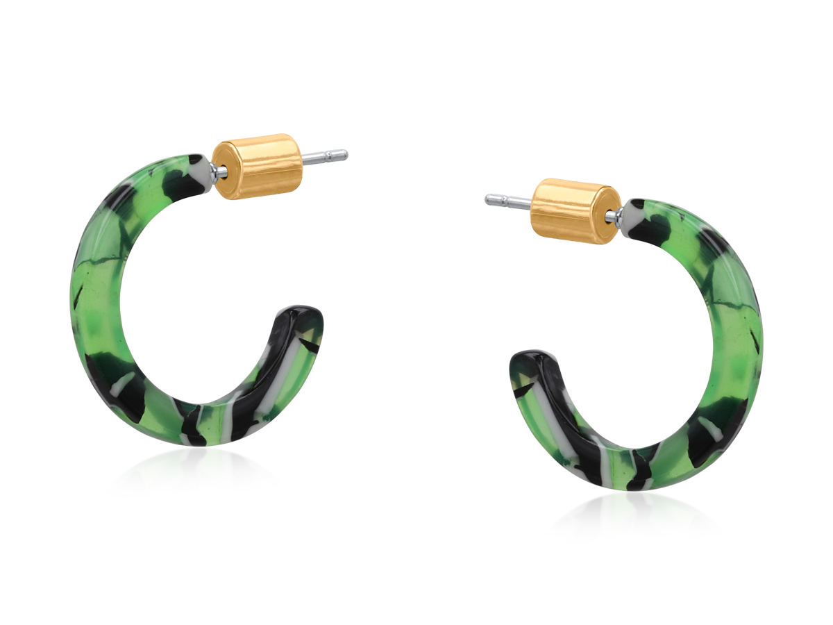 Modern and versatile, the Lucce Earrings reimagine the classic hoop in a petite resin silhouette. Available in rich green or cool blue, they bring a subtle splash of colour to everyday styling while keeping the look polished and contemporary.