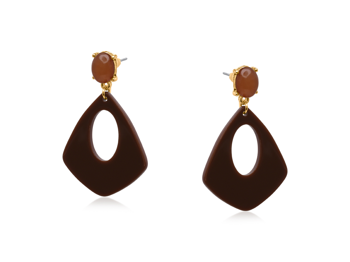 Sleek and contemporary, the Min Geo Earrings feature a minimalist geometric silhouette crafted in sustainable resin. Available in green, brown, and cream, their clean lines and subtle marbling create a versatile accessory that complements both casual and refined looks.