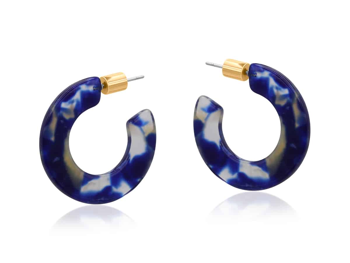 Add a pop of personality to your look with these chunky resin hoop earrings. Their bold rounded silhouette and statement-making patterns create a playful yet elevated finish, perfect for brightening up everyday outfits or adding a colourful accent to evening wear. Each pair is handcrafted using recycled resin sourced from surplus eyewear materials, making them as sustainable as they are stylish. Fitted with hypoallergenic surgical steel posts for comfort and all-day wear.