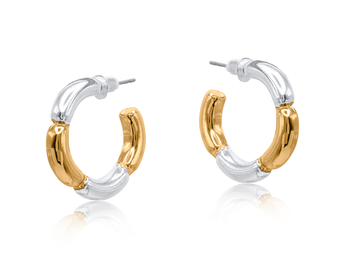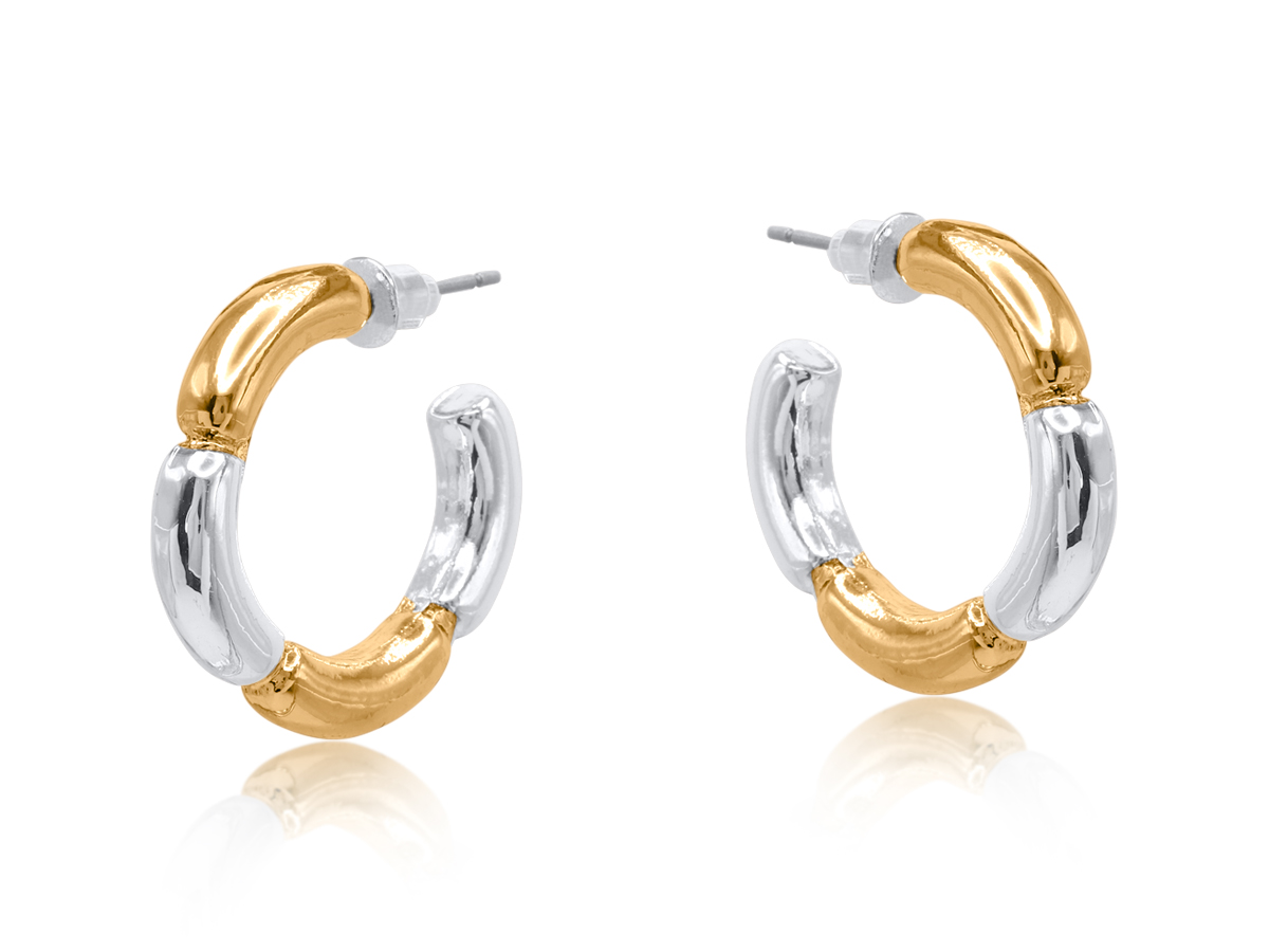 Sleek and contemporary, the Palmeira Two Tone Hoop Earrings elevate a timeless hoop silhouette with contrasting metal finishes. The dual-tone design adds subtle dimension, making them effortless to style across seasons.