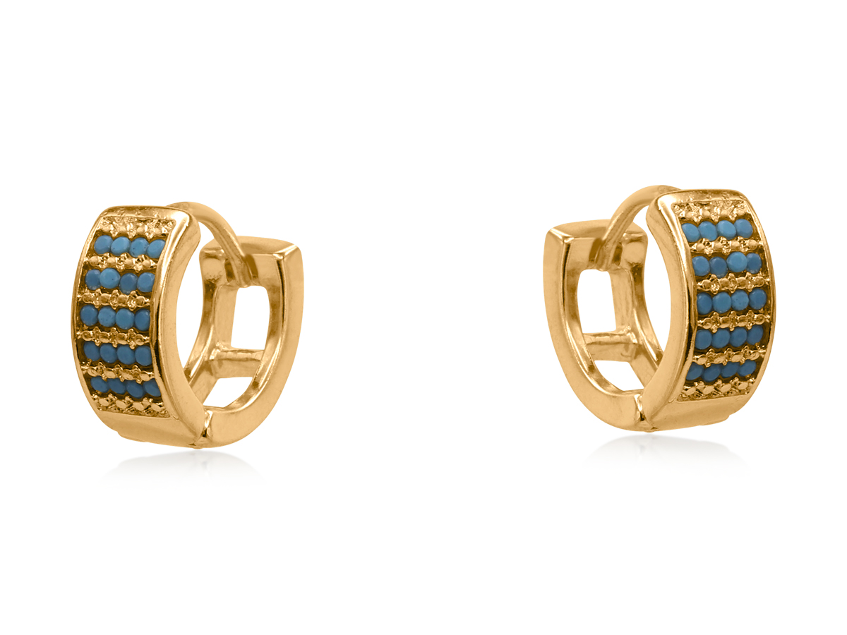 These handcrafted Siren’s Shield Huggies feature a wide gold hoop encrusted with rows of sparkling pavé stones, offering bold texture and statement shine. Available in turquoise or emerald green, they’re a standout piece that adds beauty and polish to any ear stack. At least 50% of the brass used in the jewellery we make is recycled from leftover/overhead materials. All posts are hypoallergenic and made from surgical steel.